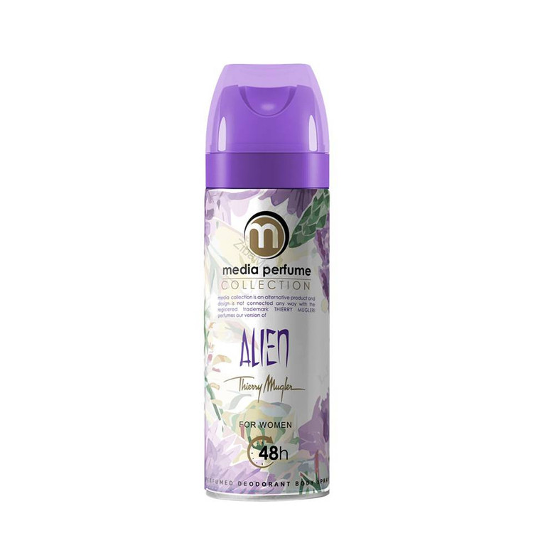 محصول فوق اسپری خوشبو کننده بدن آلبرتا 200 میل زنانه با رایحه ALIEN-Thierry Mugler می باشد . ماندگاری این اسپری 48 ساعت میباشد و این بدان معناست که میتوان پس از گذشت یک روز عطر و رایحه آن را بر روی لباس و بدن خود احساس نمایید. این محصول با اسانس قوی بدن و فضای محیط را خوشبو میکند . این اسپری ها در تماس با سطح پوست هیچ حساسیت و عوارضی نداره. این اسپری را از فاصله 15 تا 20 سانتی متری به بدن و لباس خود و یا محل مورد نظر اسپری کنید.